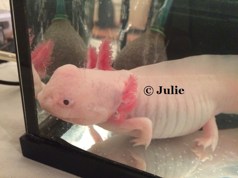 Le mûrissement de l'abcès peut durer un mois. Lorsque l'abcès a éclaté, le gonflement disparaît et l'appétit de l'Axolotl revient. |